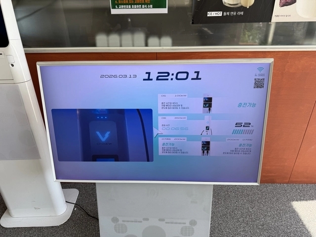 카페 안에서는 차량 충전 상태를 모니터로 확인할 수 있었다. 충전기별 충전량과 상태가 실시간으로 표시됐다.