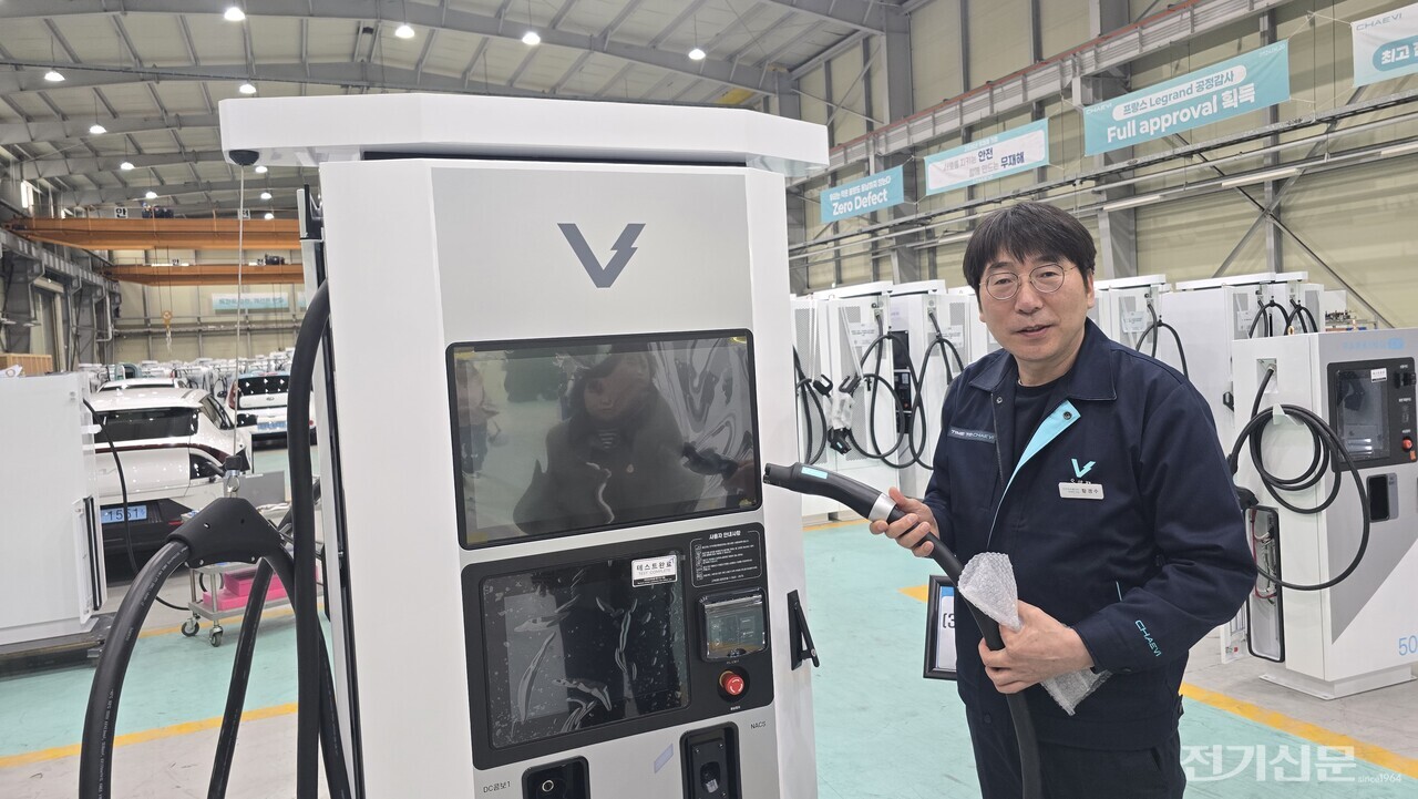 이 이사가 케이블 하나를 내밀었다. 기존 200kW급보다 52% 가벼운 수냉식 케이블이었다. 1m당 2.4kg이던 무게가 절반 이하로 줄었고, 허용 전류는 300A에서 350A로 오히려 늘었다. 대기업과의 협력으로 개발된 시제품이다. 이 이사는 “무거운 케이블 때문에 충전을 포기하는 이용자가 없어야 한다”며 “올 하반기 인증을 마치고 현장에 투입하는 게 목표”라고 밝혔다.