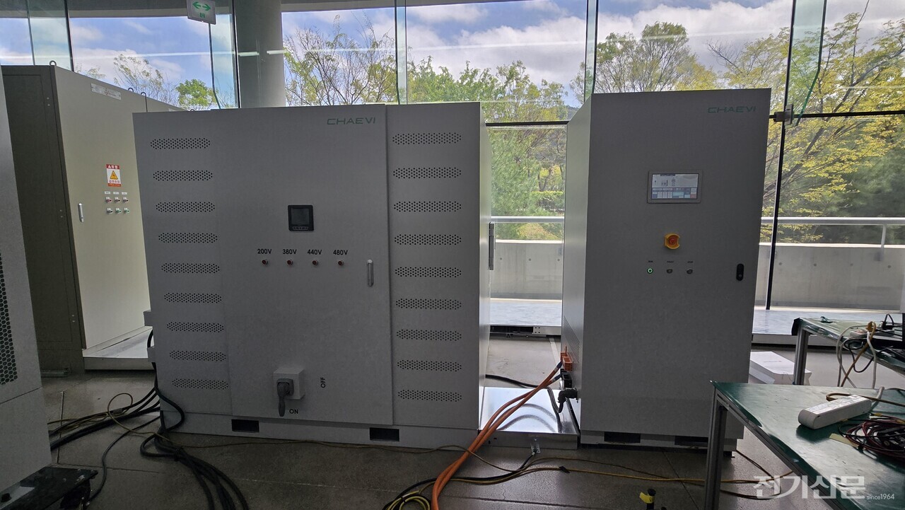 ▲ 전력회생장치. 테스트 전력의 90%를 계통으로 되돌려 재사용할 수 있다. [사진=오철 기자]